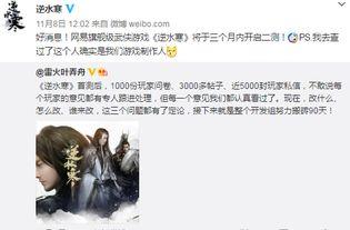 值得一提的是,《逆水寒》的官方微博在这次爆料中,与玩家们进行了积极的互动。他们不仅发布了最新的游戏信息,还认真回复了玩家们的提问和建议。这种官方与玩家之间的良性互动,让许多玩家感受到了《逆水寒》团队的用心,也让人们对这款游戏更加期待。
